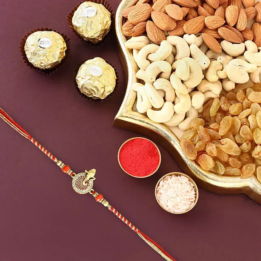 | RMTDCRSSNLXXX000230-FES-0000401-Sneh24 Neon Trunk Regular Devotional Ganesha Rakhi- RMTDCRSSNLXXX000106-FESROC004-Roli Chawal-1 RMTDCRSSNLXXX000040-CONWPR169-Envelop Rakhi W Card-1 RMTEDBDRIEDRI000004–Almond-100gm RMTEDBDRIEDRI000010–Cashewnut-100gm RMTEDBCONFXXX000025-EDBCHC741-Ferraro Rocher T-3 37.5gm-1 RMTEDBDRIEDRI000026–Raisins Golden-100gm |