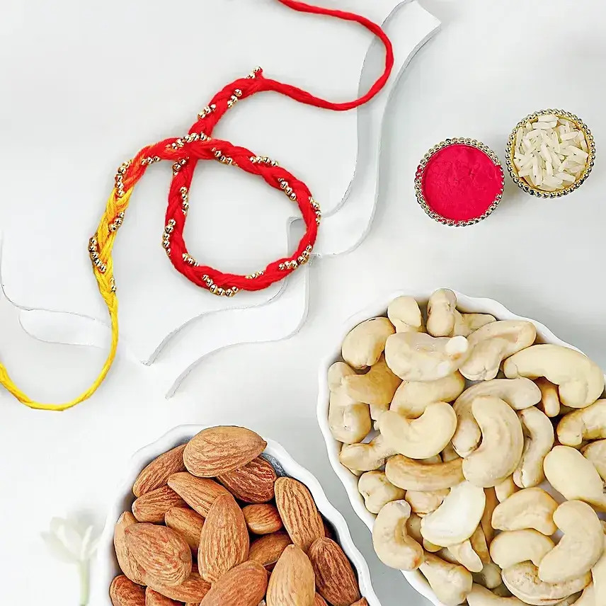 Sacred Bead Work Mauli Rakhi With Cashew & Almonds