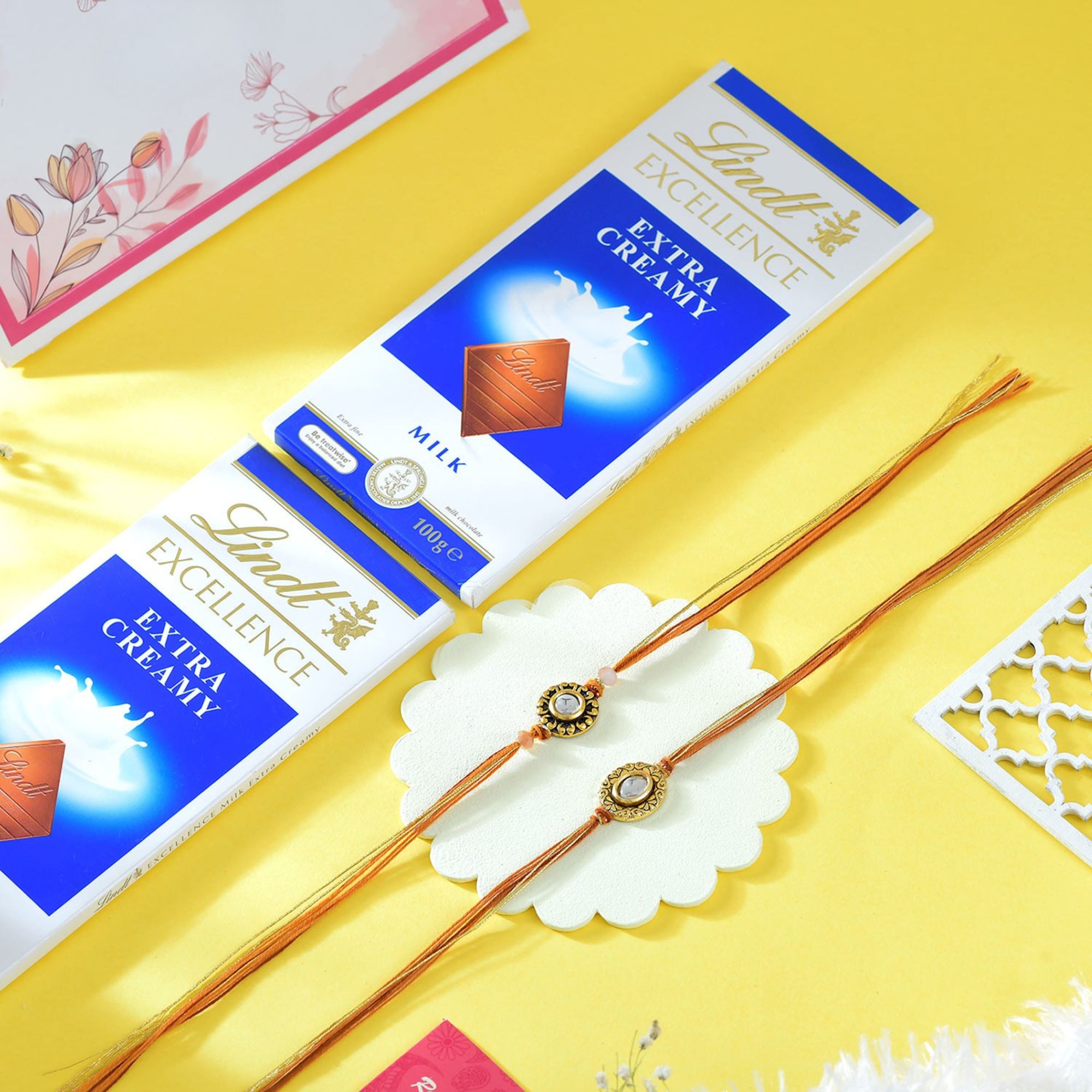 Two Kundan Rakhi Set With Chocolates